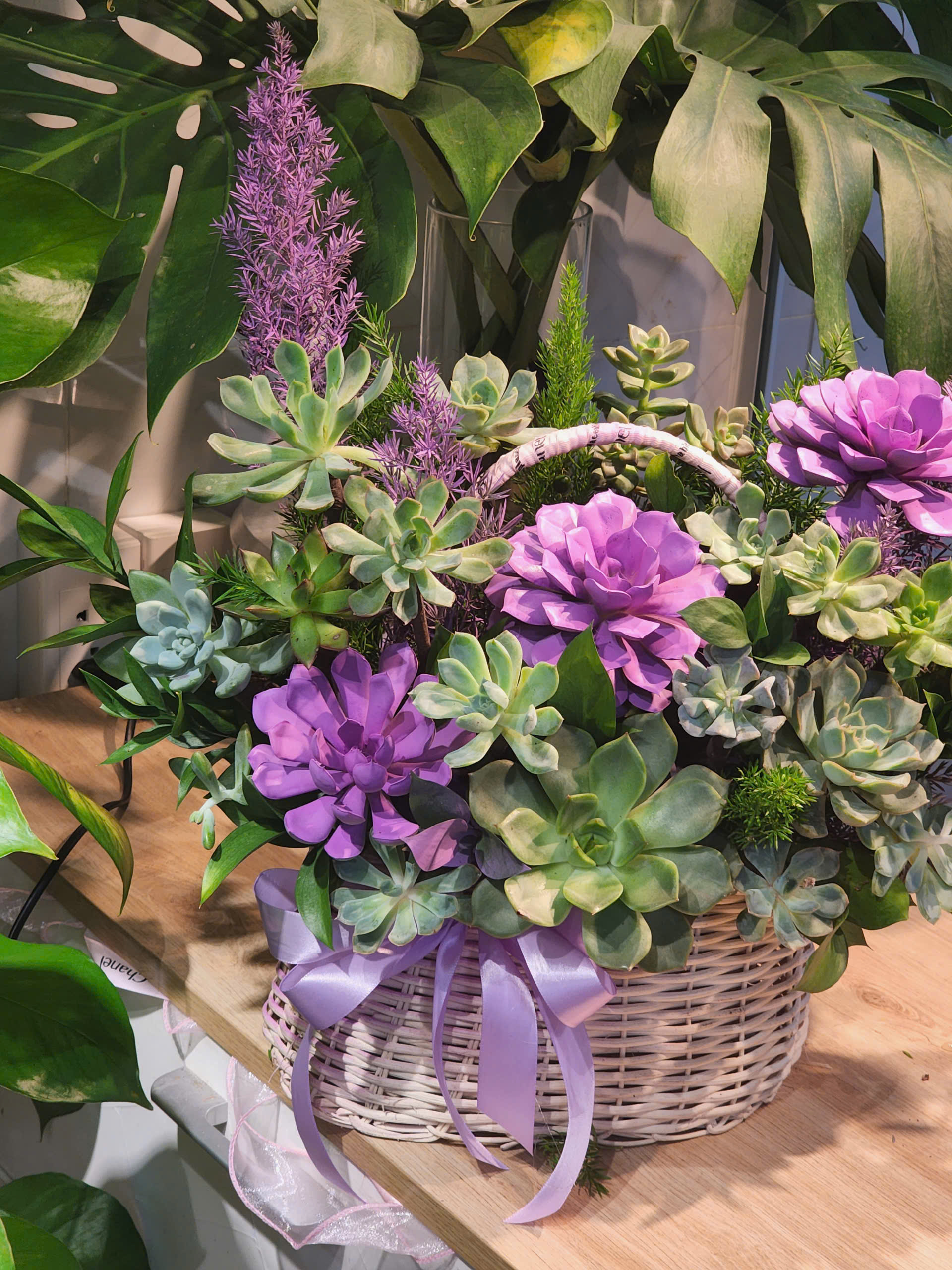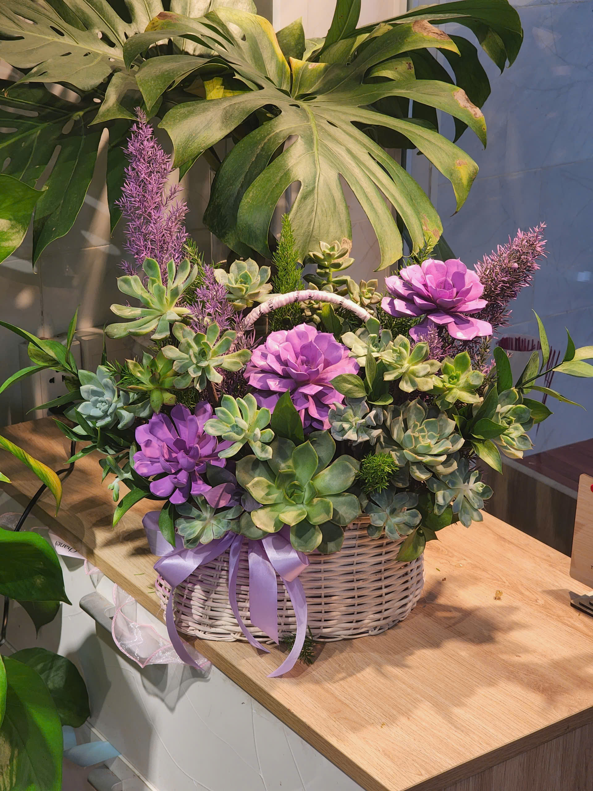 🌸 Giỏ hoa sen đá tím không chỉ đơn giản là một món quà, mà còn là thông điệp yêu thương, gắn kết và may mắn gửi đến người nhận.